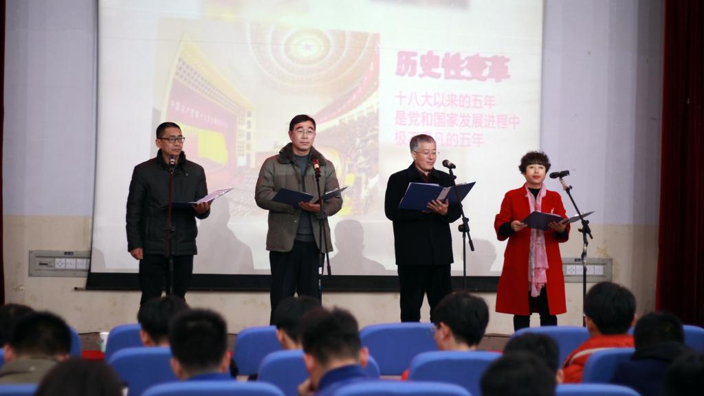 诵读会内容精彩纷呈,以十九大报告原文(节选)为内容配上音乐、幻灯片等形式,诵读者饱含深情、激情高昂、抑扬顿挫,把十九大报告的内容进行了全方位的展示,让在场师生再一次接受了党的十九大报告的洗礼,将对党和国家的热爱更加深刻地烙印在心中。