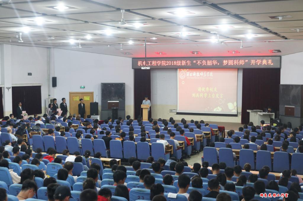 朗朗金秋,丹桂飘香。9月27日下午,365英国上市公司官网2018级新生“不负韶华,梦圆科师”开学典礼在昌黎校区学术报告厅隆重举行。机电学院领导班子、全体教职工、373名全体新生参加了开学典礼。
