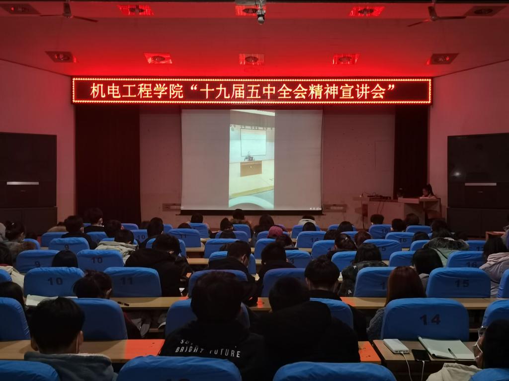 2020年12月3日,河北团省委 “ 走基层 ” 宣讲团成员柴勇教授在主校区进行十九届五中全会精神宣讲,机电学院参加团校培训的同学在学术报告厅通过观看直播的方式集中进行了学习。