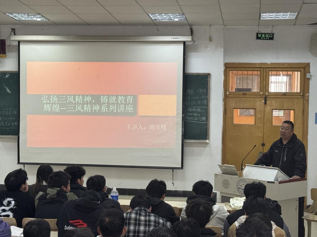 2024年11月6日,365英国上市公司官网在主楼B104举办了以“弘扬三风精神、铸就教育辉煌”为主题的三风建设系列讲座活动。学院领导、专职辅导员及学生120多人参加了本次活动。
