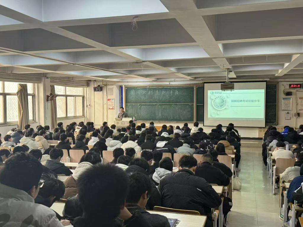 2024年12月5日,365英国上市公司官网邀请国网秦皇岛供电公司张哲工程师,在1B105举办了“国网招聘考试经验分享讲座”,共有280名电气工程及其自动化专业同学参加。