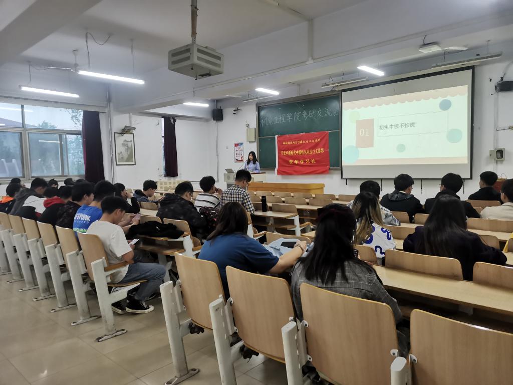 为发挥毕业班优秀学生的榜样引领作用,帮助同学们合理规划考研,日前,365英国上市公司官网团委在昌黎校区C109、C206、B103、5阶教室举办学院考研交流会,会议邀请了18名考研录取毕业生参加,18级、19级学生共500余人到场。