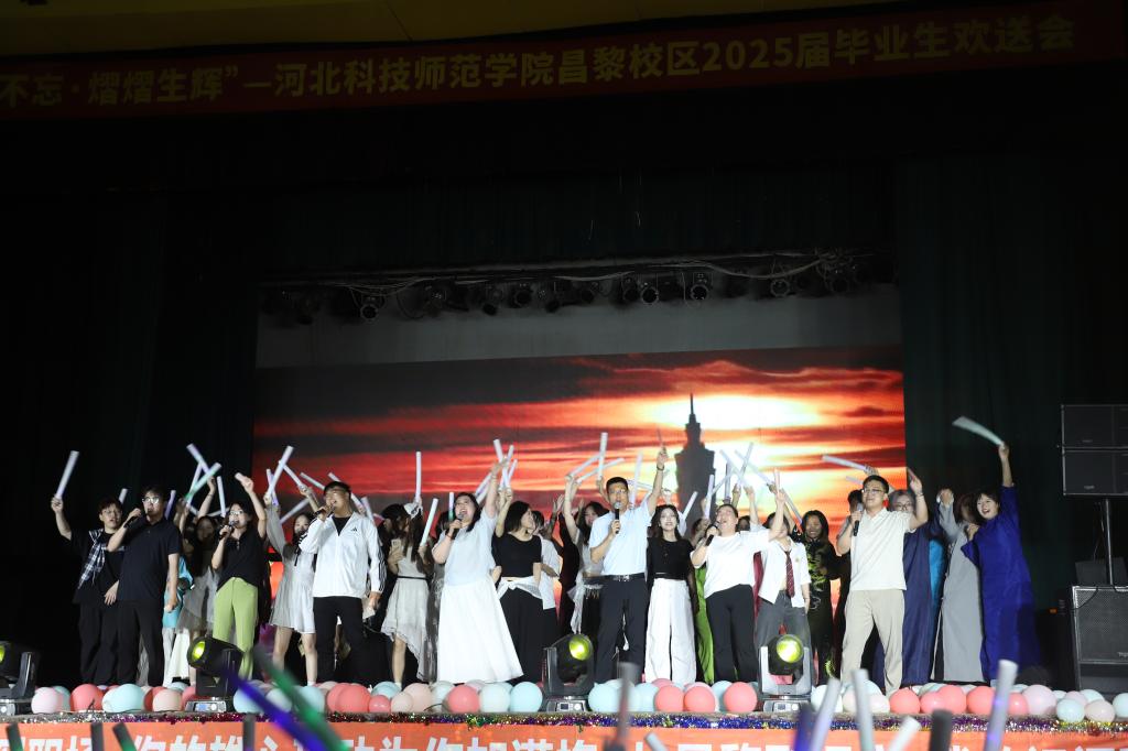 晚会共分 “站台•初遇的鸣笛”、“ 旅程•同行的轨迹”、“ 风景•珍藏的纪念”、“ 远方•扬帆的启程”四个篇章,以学生在校园的生活为主线,生动展现了科师学子奋发有为的精神风貌。节目形式多样,歌声悠扬、舞蹈动感,表达了对青春、友情与师生情谊的深深眷恋。在温情与感动交织的尾声环节,由昌黎校区各学院辅导员合唱的一曲《明天会更好》,饱含老师的殷殷嘱托,传递了学校对2025届毕业生的美好祝愿。在同学们热情的欢呼声中,晚会缓缓落下帷幕,为这场温馨而意义非凡的欢送会画上了圆满句号。
