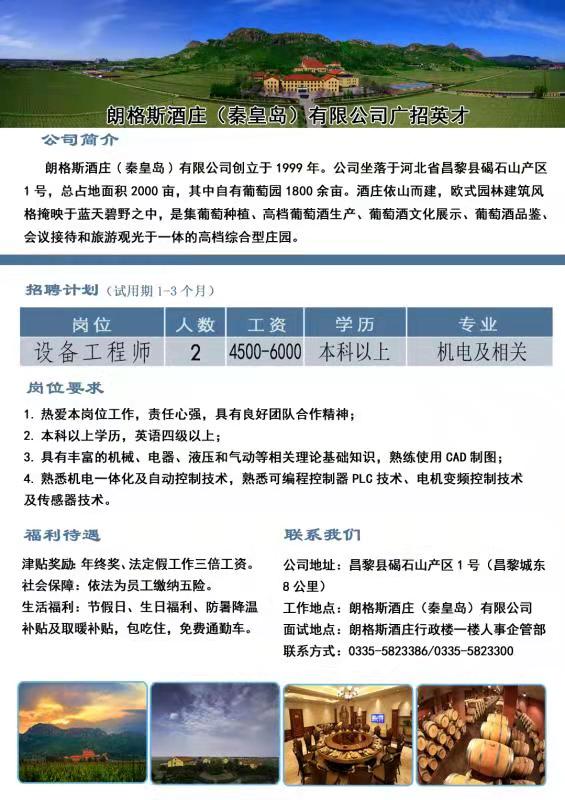 朗格斯酒庄(秦皇岛)有限公司创立于1999年。公司坐落于河北省昌黎县碣石山产区1号,总占地面积2000亩,其中自有葡萄园1800余亩。酒庄依山而建,欧式园林建筑风格掩映于蓝天碧野之中,是集葡萄种植、高档葡萄酒生产、葡萄酒文化展示、葡萄酒品鉴、会议接待和旅游观光于一体的高档综合型庄园。